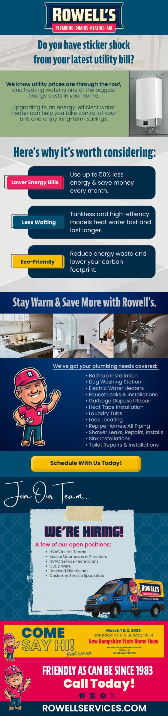 "Friendly As Can Be Since 1983!" When you need help with your plumbing, drains, heating, cooling or electrical in Chichester, you can always rely on Rowell's Services! Call us now or book online!